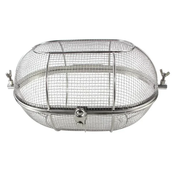 This is a large basket that is placed on top of the standard Rotisserie unit as an accessory. Thanks to this basket, you will be able to fry a larger amount of food. This accessory will be especially useful when frying chicken wings and vegetables. The food will cook evenly and the flavours will mix perfectly. The accessory is made of stainless steel.